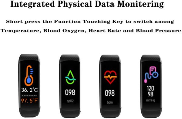 Smart Watch, Fitness Tracker with Body Temperature Thermometer Blood Oxygen Heart Rate Blood Pressure Monitor Sleep Monitor Step Counter Pedometer Calorie Counter IP67 Waterproof for Women Men Kids